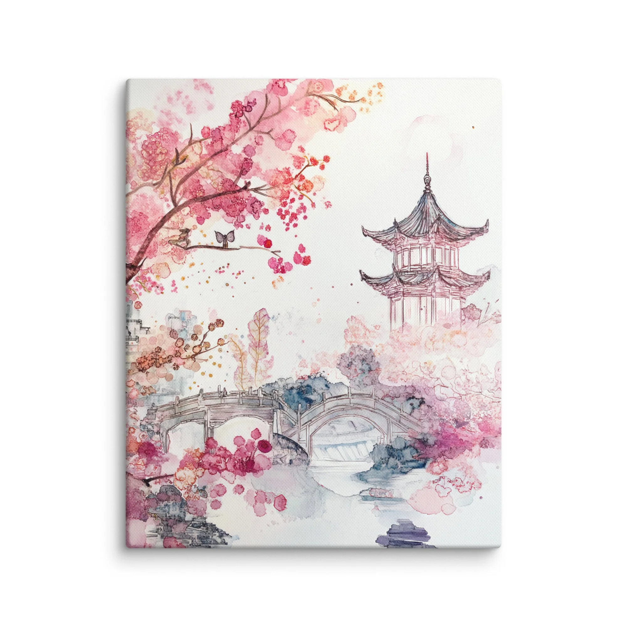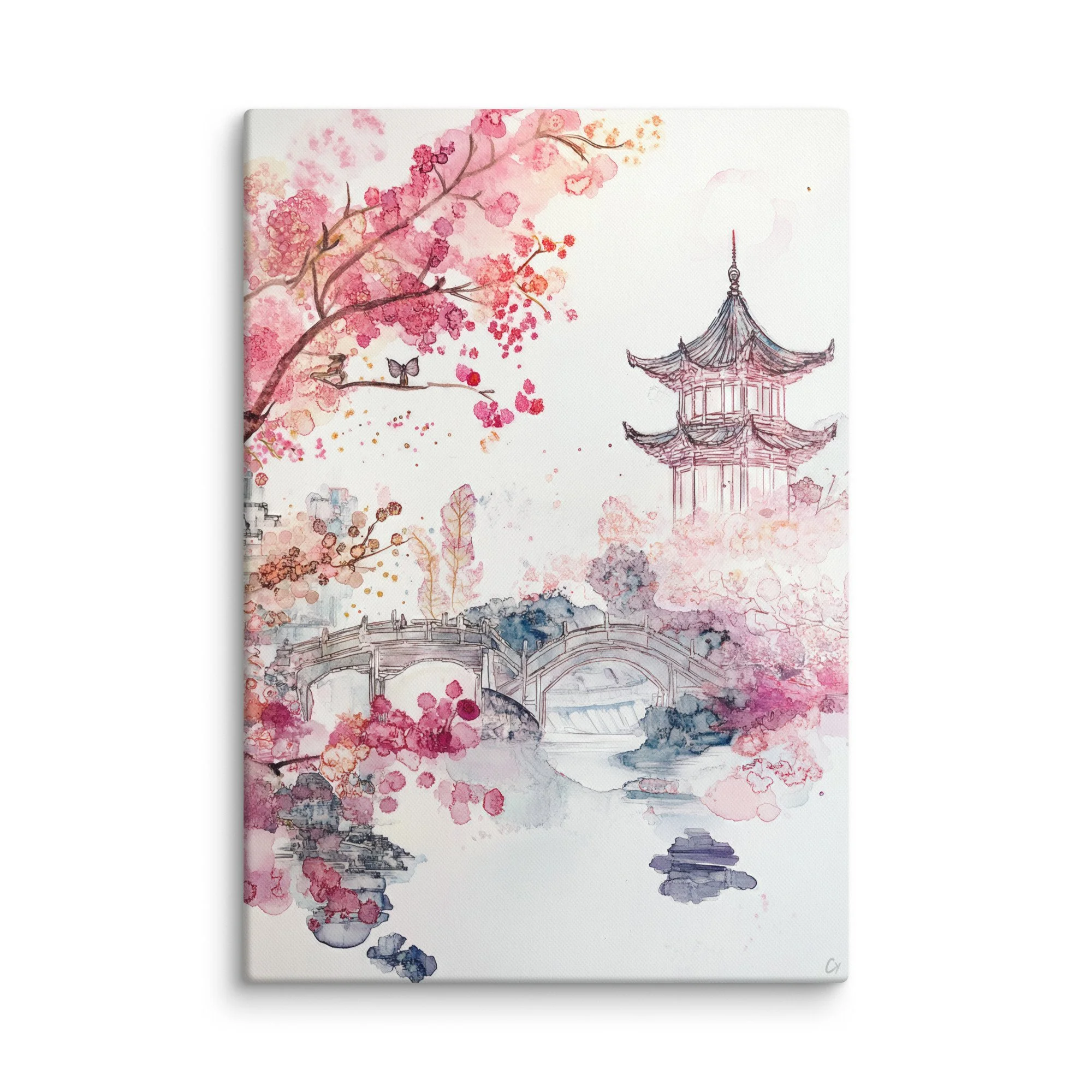 Bring a sense of peaceful beauty into your home — a luminous canvas that whispers of blossoms, bridges, and the quiet rhythm of flowing water.
