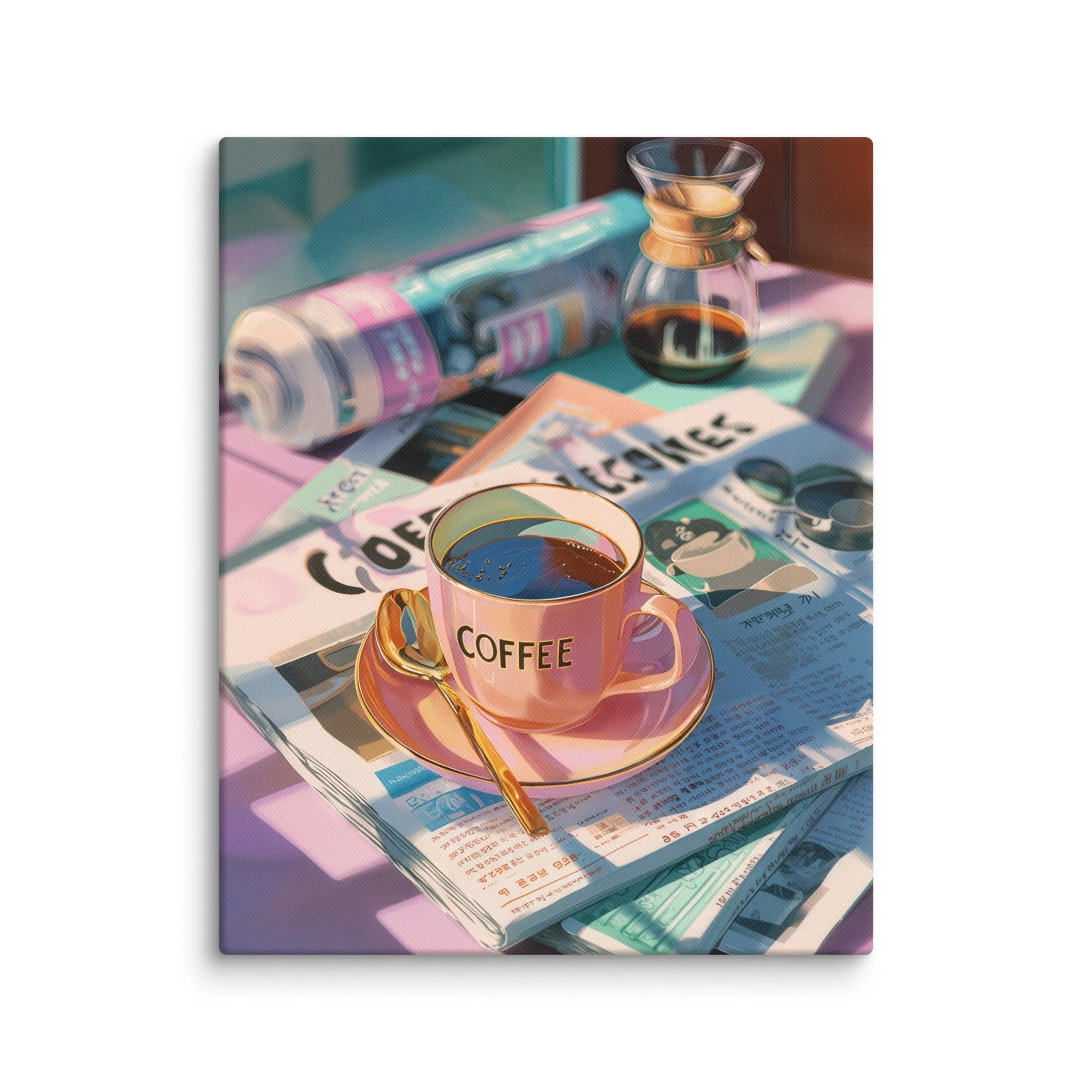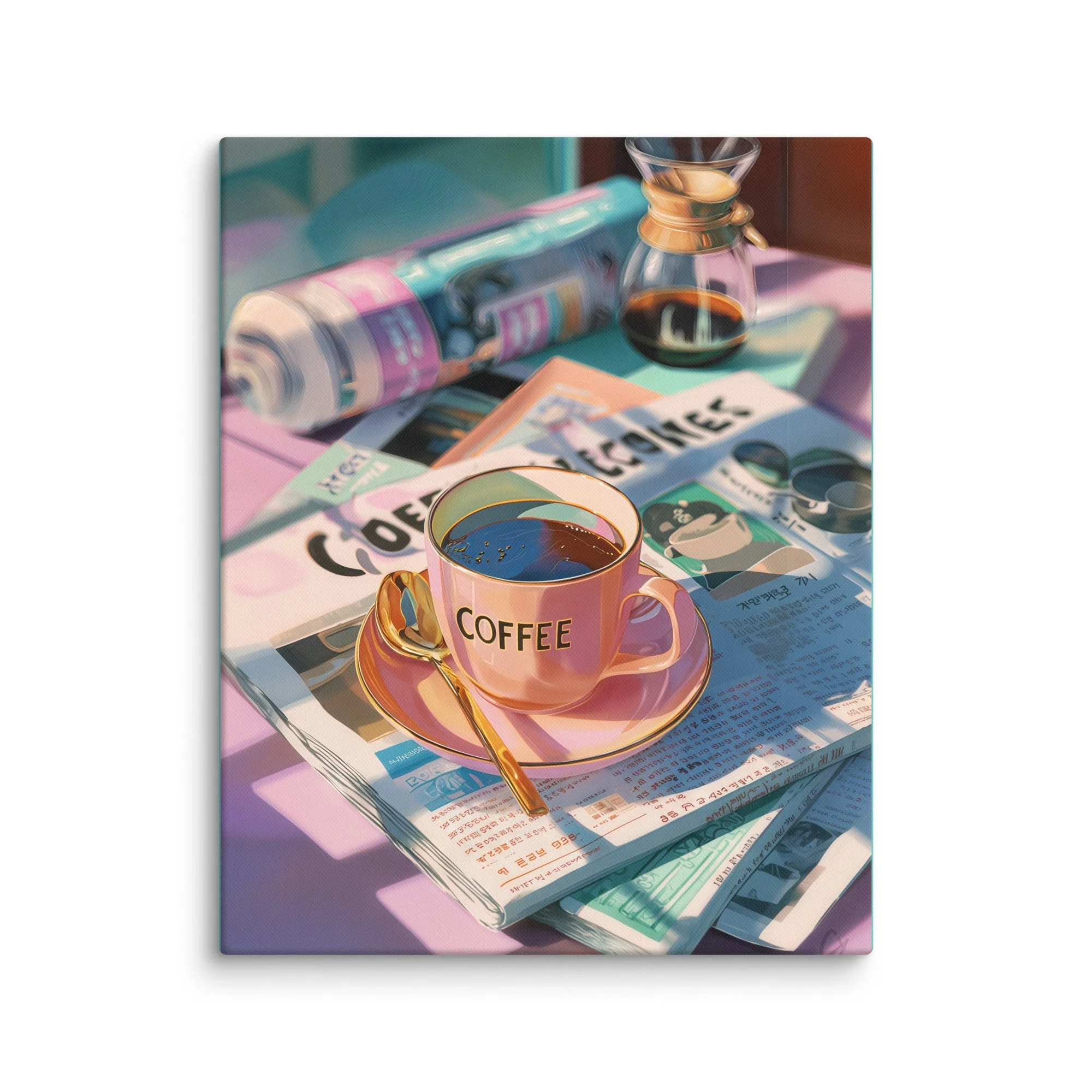 Morning Coffee Glow Canvas Print | Retro Pastel Wall Art